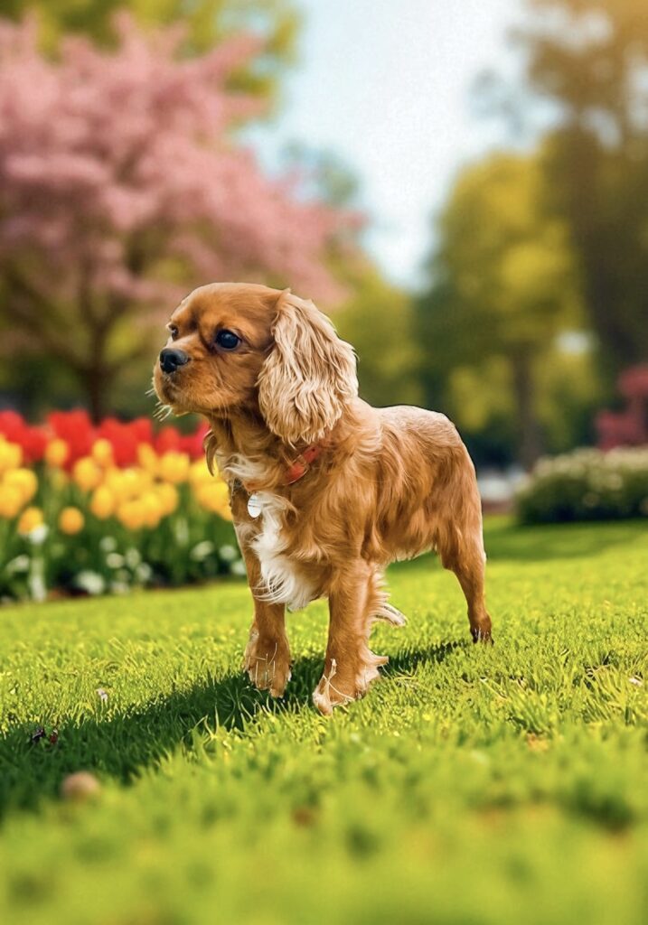 Pete is a Ruby Cavalier King Charles Spaniel.
