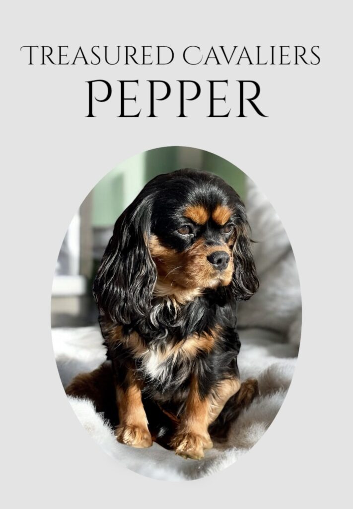 *Pepper* Dam is a classic Black and Tan Cavalier King Charles Spaniel.